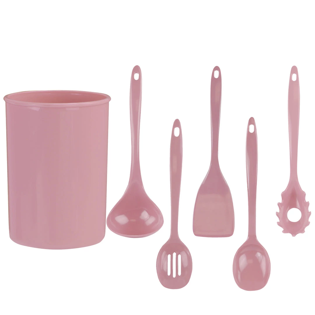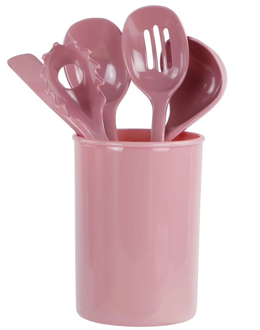 - Set Contains: Utensil Holder & 5 Utensils (Spoon, Slotted Spoon, Ladle, Spatula, Spaghetti Fork)