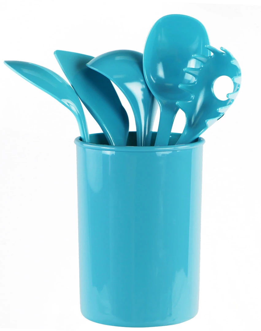 - Set Contains: Utensil Holder & 5 Utensils (Spoon, Slotted Spoon, Ladle, Spatula, Spaghetti Fork)