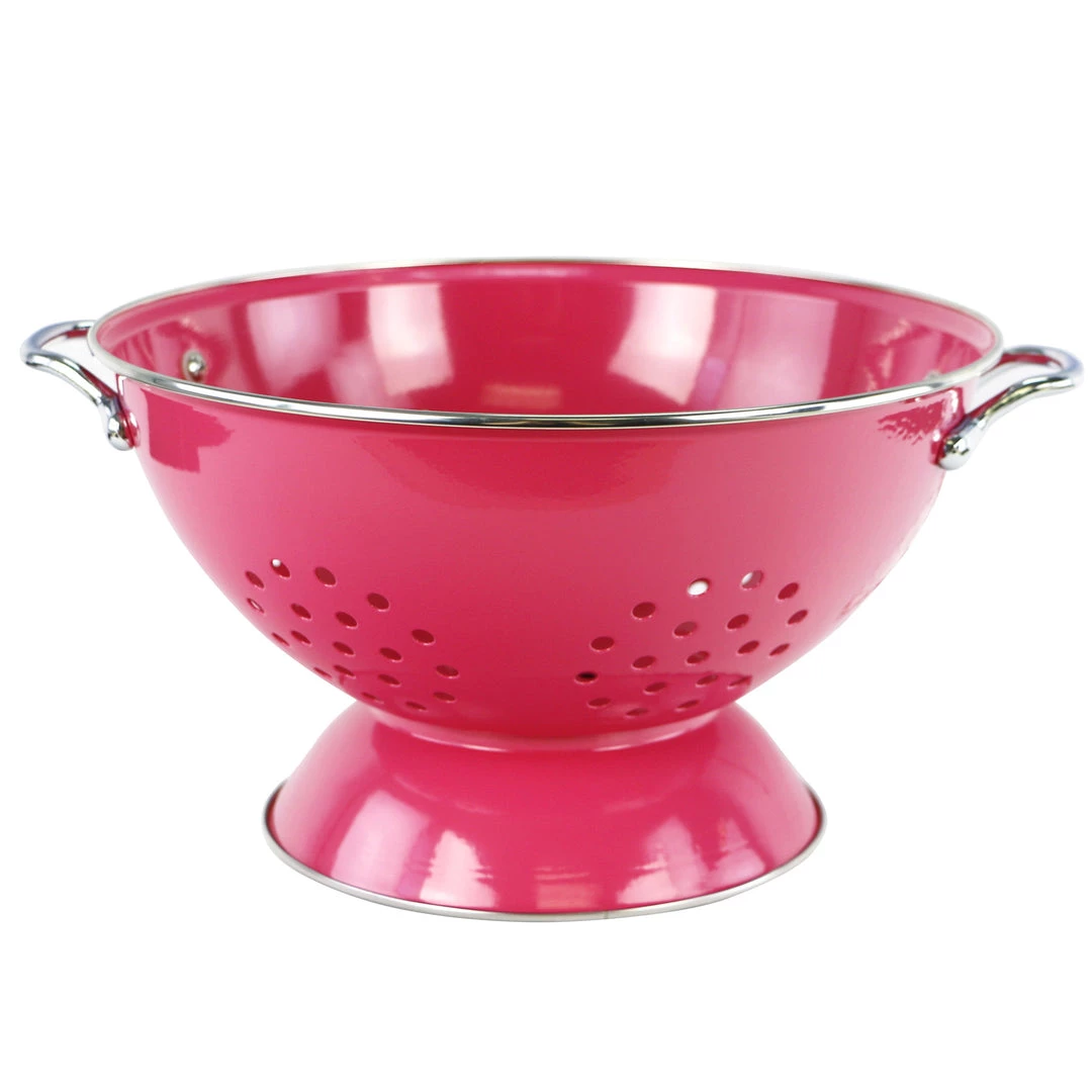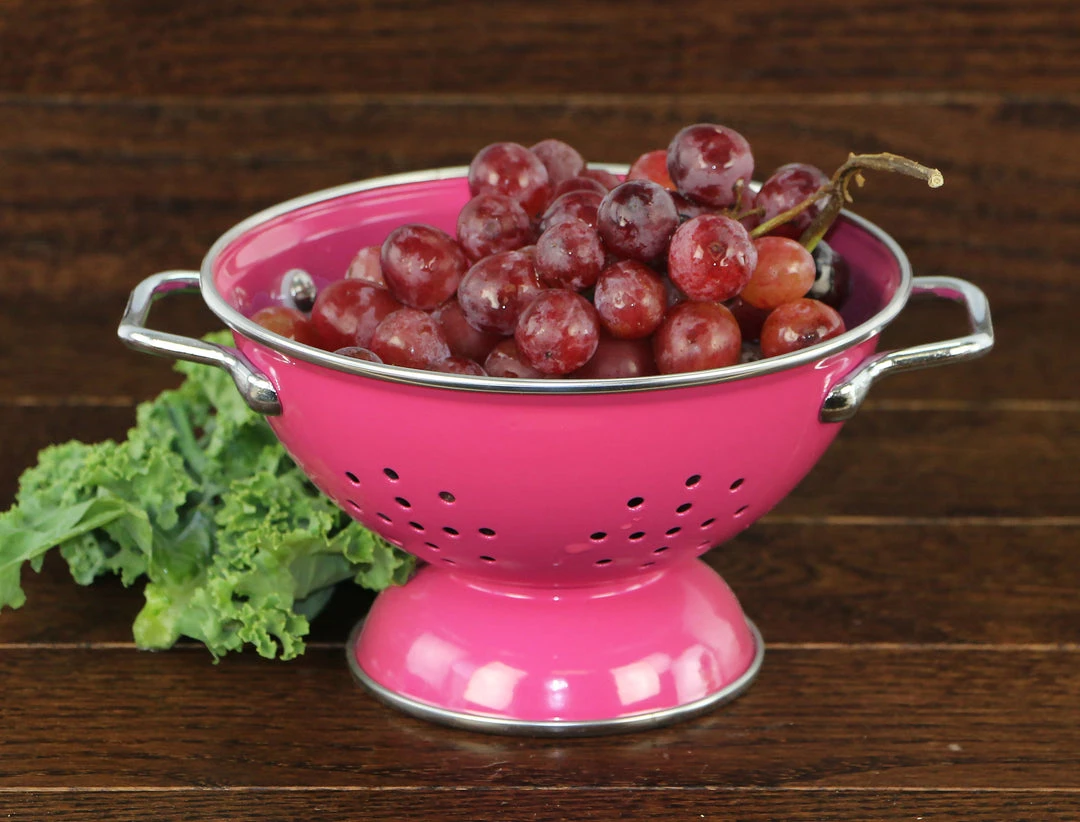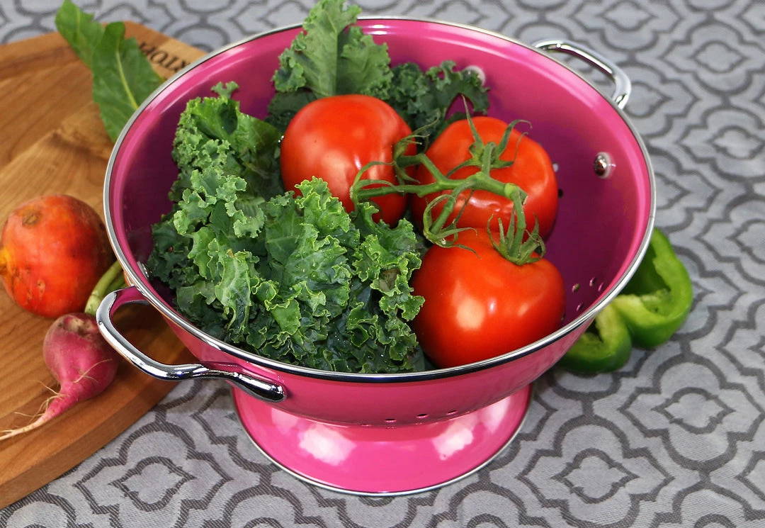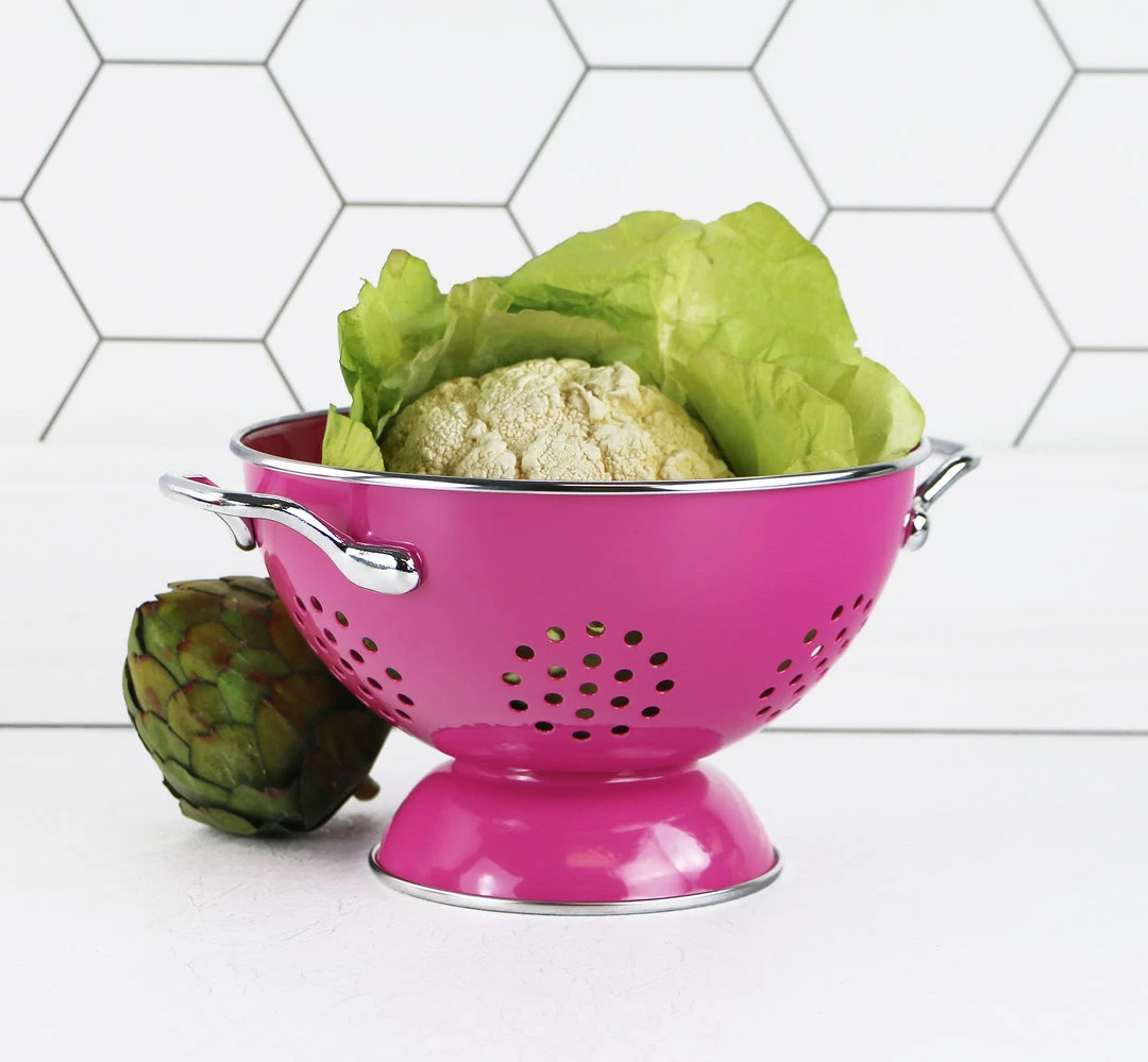 Colanders are both usual and can add color to your kitchen. These powder-coated colanders are for both hot and cold prep items. When it’s not in use, don’t put it away, hang it on your pot rack or use it as a fruit bowl, to enjoy the vibrant color every day.