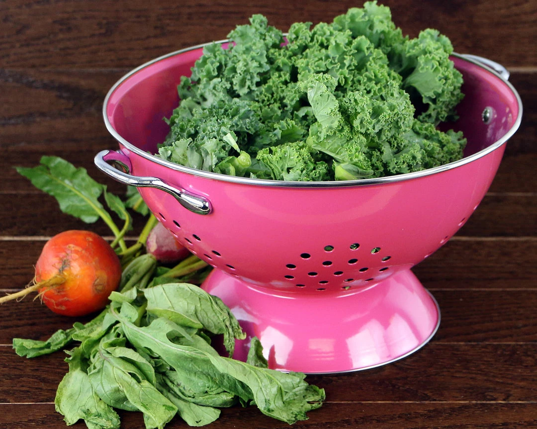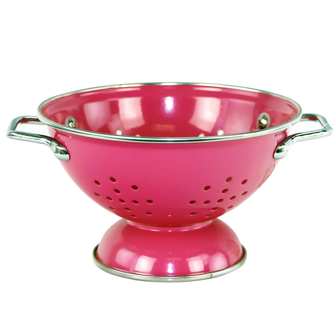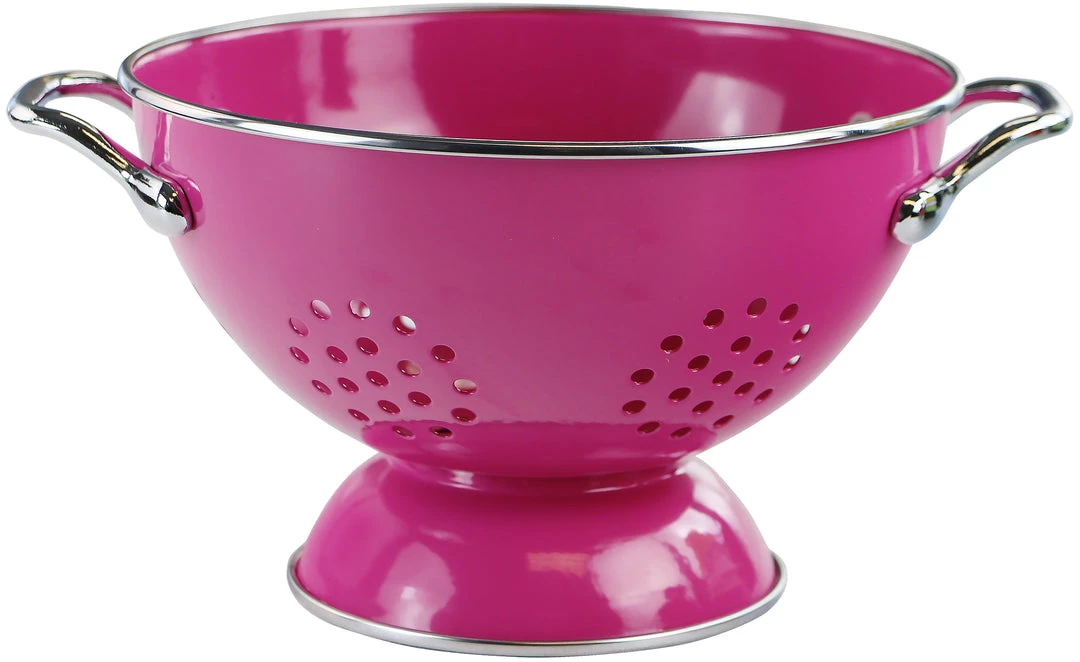 Colanders are both usual and can add color to your kitchen. These powder-coated colanders are for both hot and cold prep items. When it’s not in use, don’t put it away, hang it on your pot rack or use it as a fruit bowl, to enjoy the vibrant color every day.