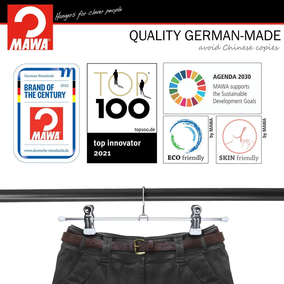 MAWA 12″ Pant Hanger, K-30D, White