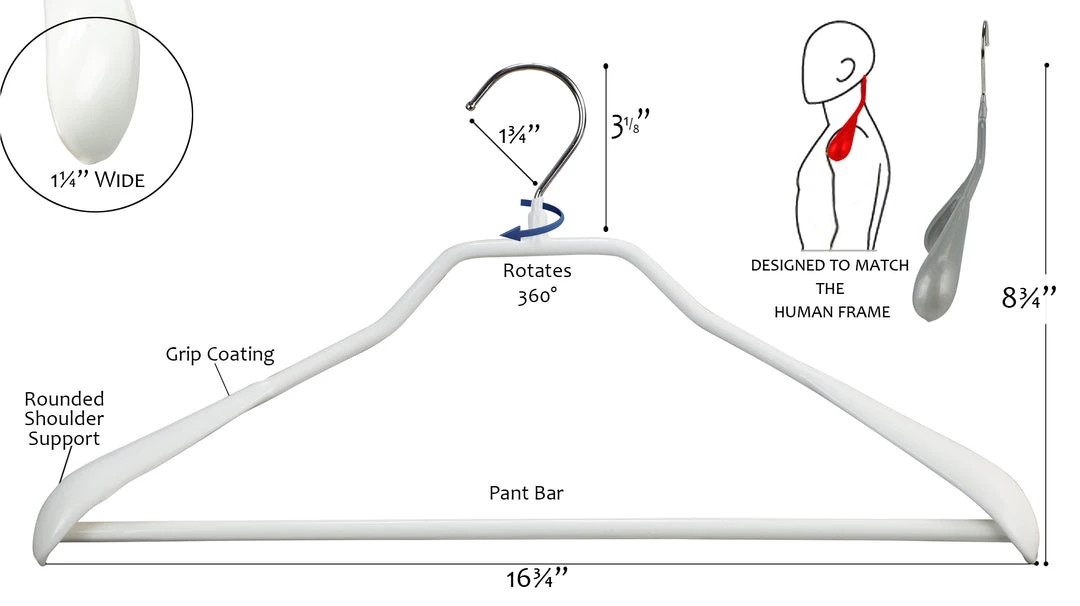 MAWA MAWA HANGERS BodyForm, 42-LS, Pant Bar Hanger, White