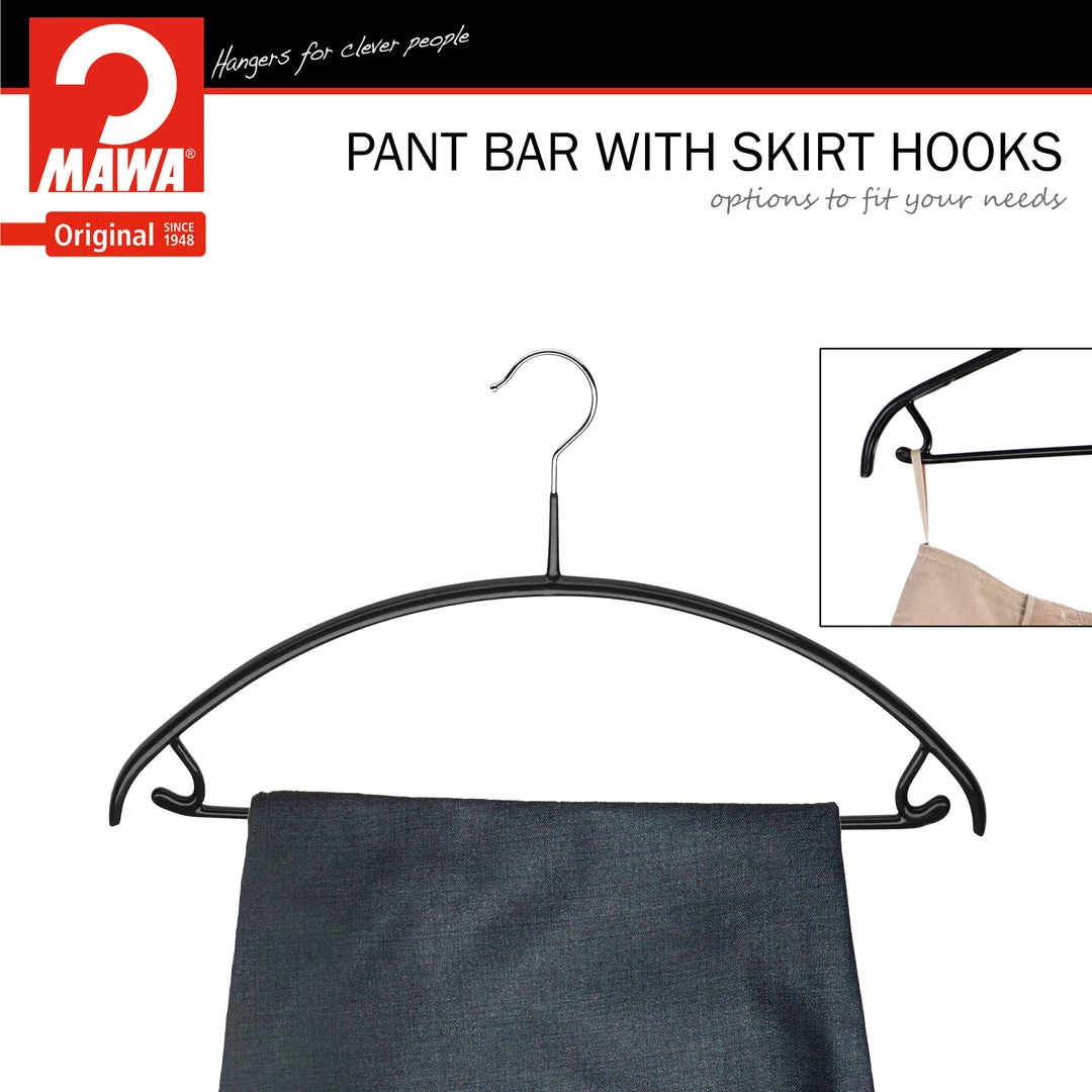 MAWA MAWA HANGERS Euro, 42-U, Pant Bar/Skirt Hook Hanger, Black