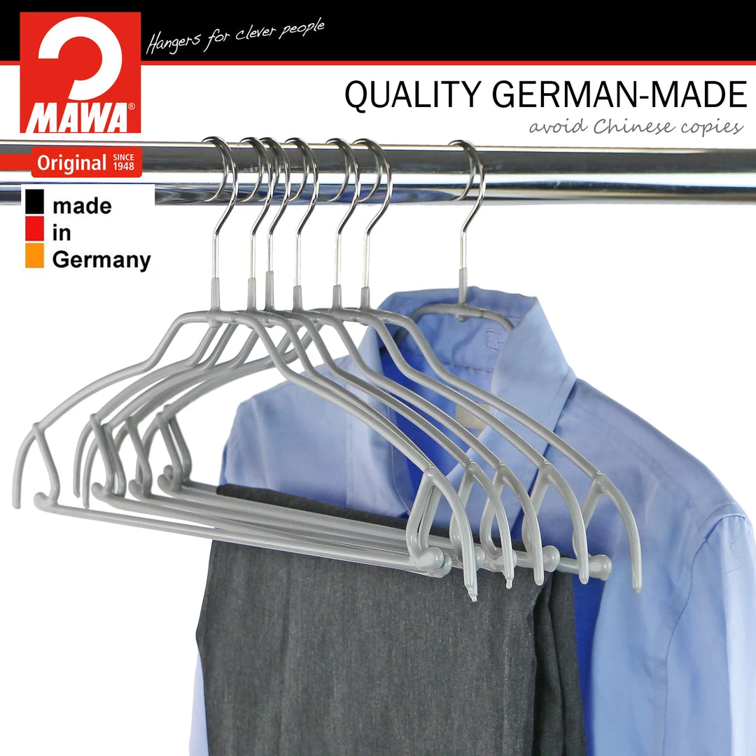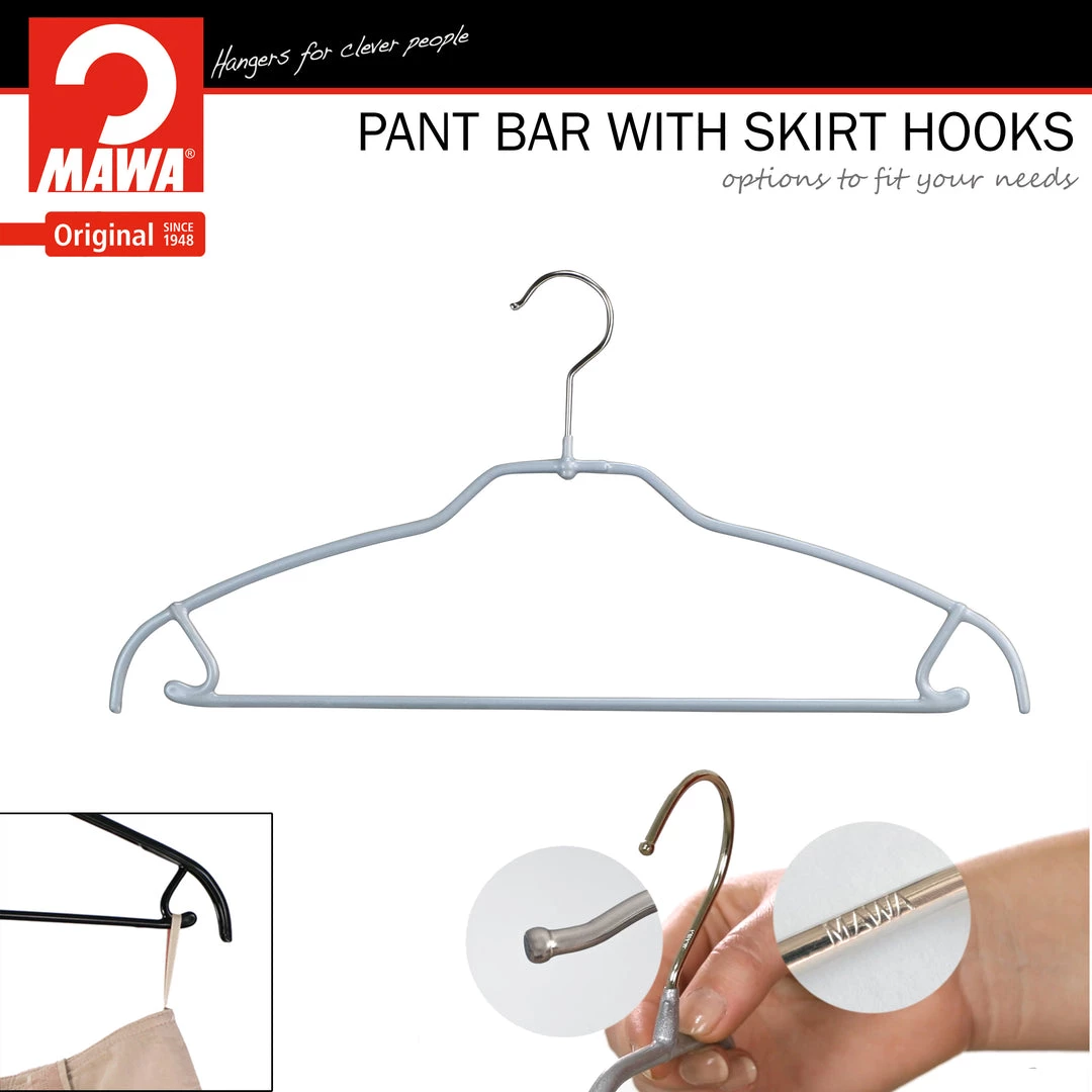 MAWA MAWA HANGERS Silhouette Ultra Thin, 42-FTU, Pant Bar/Skirt Hook Hanger, Silver