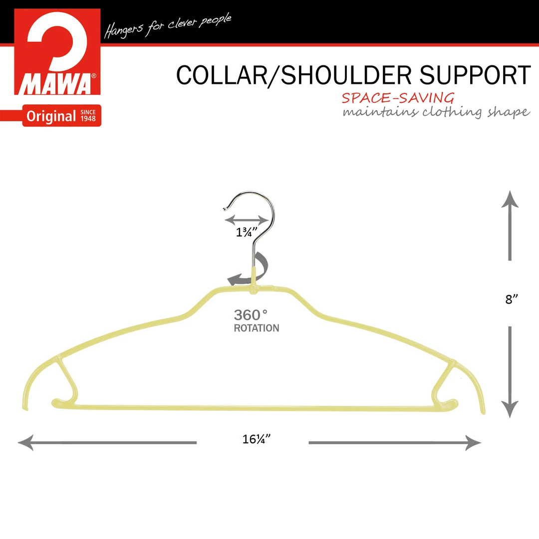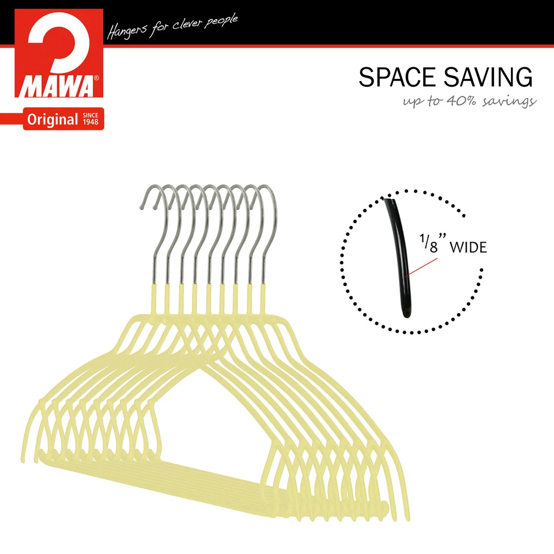 SPACE SAVING | Each hanger is only .12 inches or 1/8 of an inch thick. However, it can hold up to 8 pounds. Gain up to 40% of additional closet storage space. Unlike other companies, MAWA is made to last.