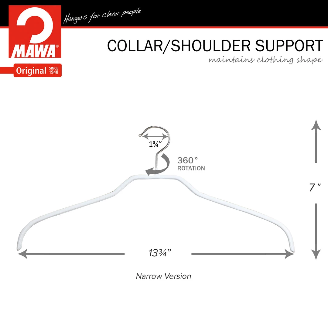 SILHOUETTE SERIES | This series was created to support shirts, coats, and more that need collar support. This narrow version measures 13.75″w x 7″H and is .37″ thick, Also great for kid closets or people with narrow frames.