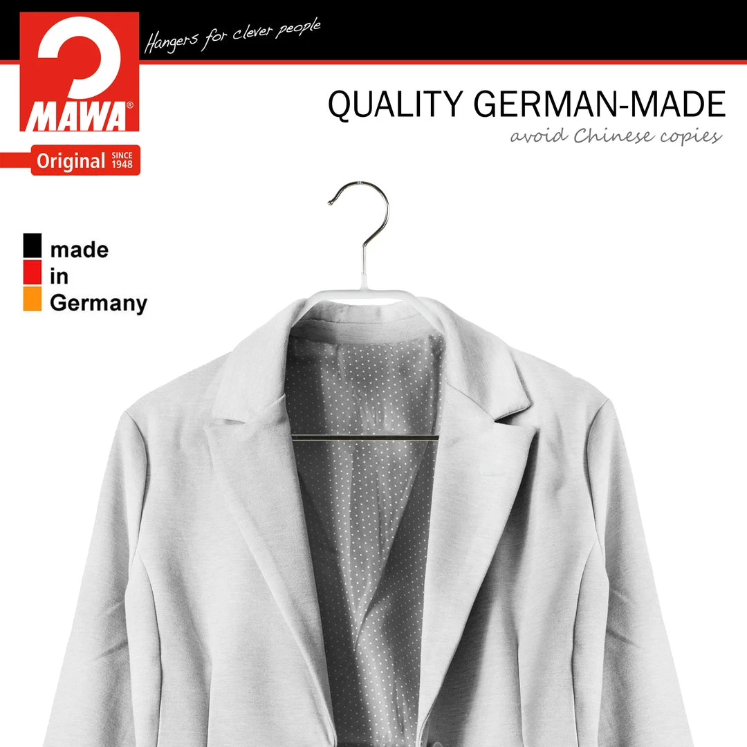 ENVIRONMENTALLY FRIENDLY | At Mawa we pay attention to the environment and the health of our customers. That is why MAWA clothes hangers do not contain any heavy metals or plasticizers containing phthalates.