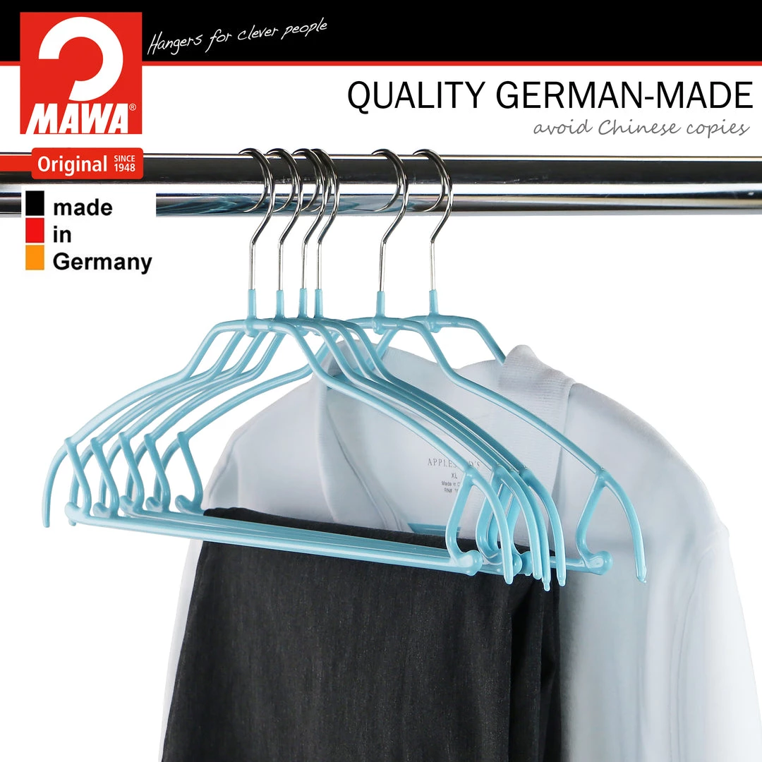MADE IN GERMANY | Quality steel hanger with PVC coating which prevents clothes from slipping off and onto your floor.