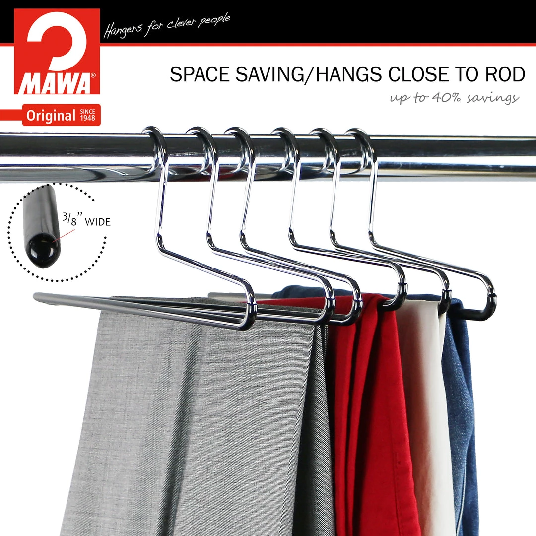 This trouser hanger will not put folds or creases in your pants regardless of the material. The modern Shape allows you to see the item while hung. And with all MAWA hangers, they will hang at the same height as all other models creating a uniform look. With MAWA’s eco-friendly nonslip coating will keep your linen pants from sliding off and is safe for all cloth materials. You will truly see the difference when you notice there are no clothes on your floor that need rehung. Don’t be fooled by a China knockoff, get quality German craftsmanship which will last. If your clothes could choose a hanger, they would choose MAWA.