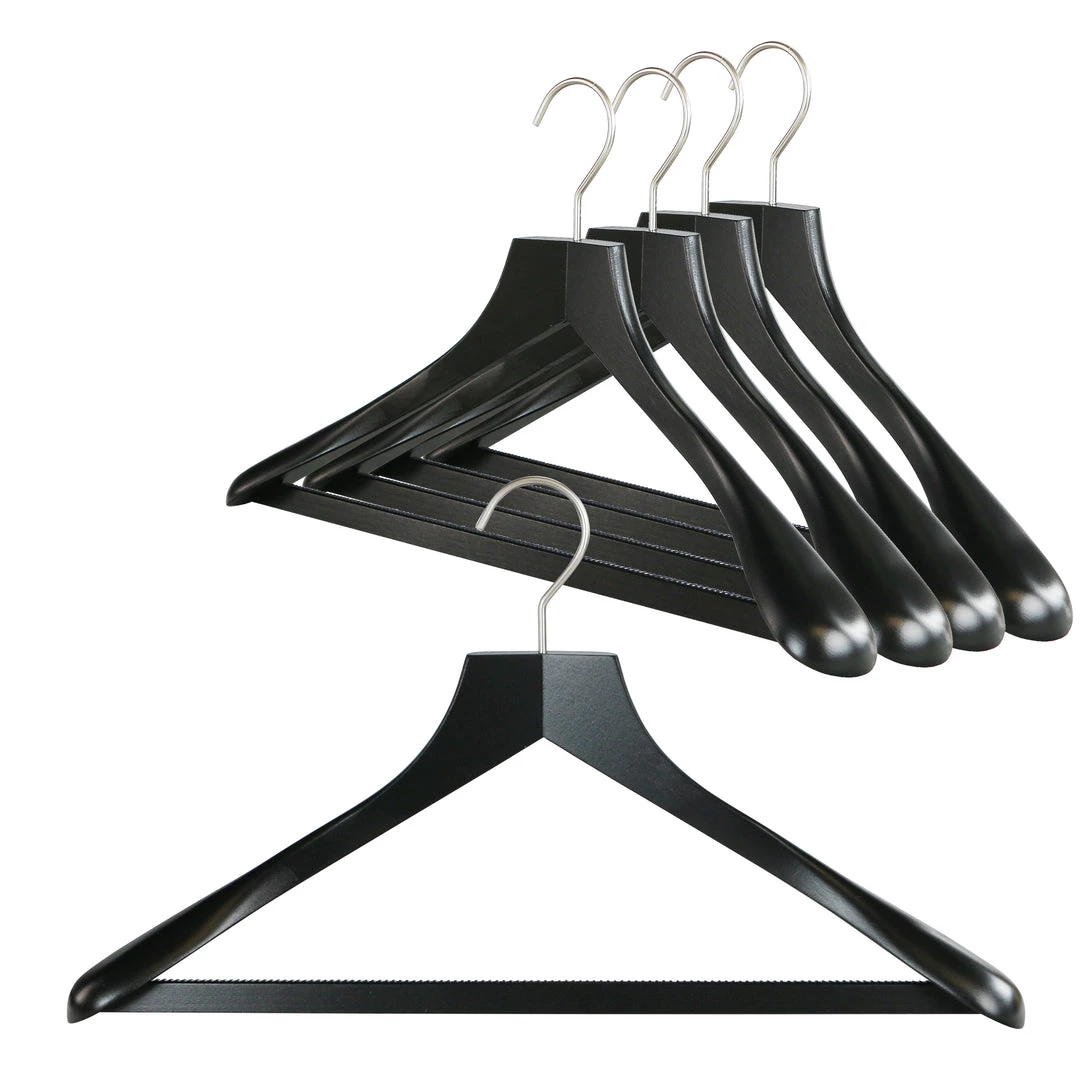 Reston Lloyd Best In Wood Metropolis Series, Bodyform Wide Shoulder Coat Hanger With Pant Bar, Profi 45/SV/HRS, Black, Silver Hook