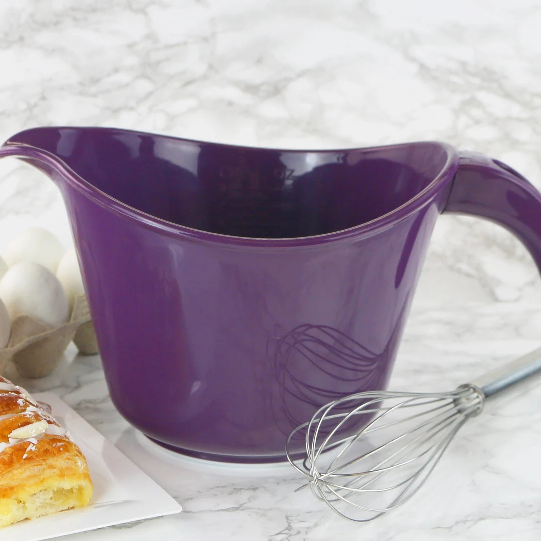 This lightweight batter bowl is easy to use. Use for your baking needs, or other mixing/marinating tasks. Slip the handle off when you need to store it away.