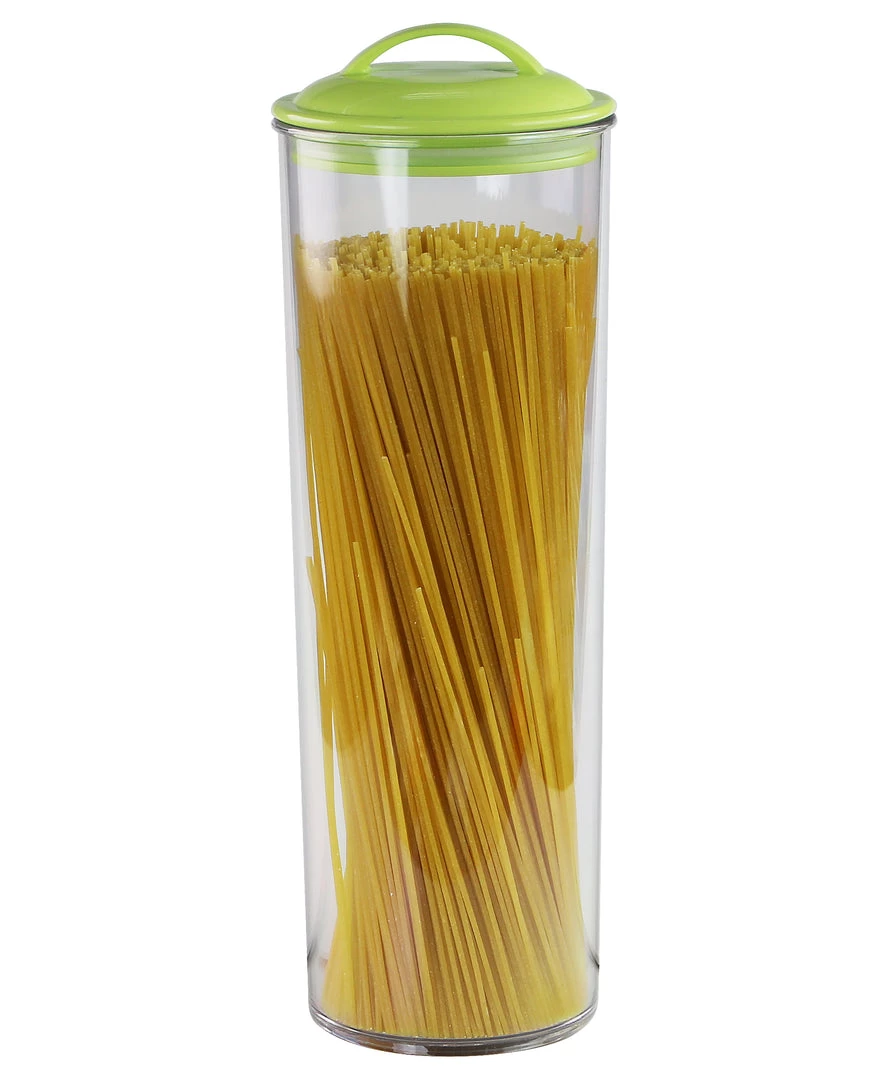 This clear acrylic spaghetti canister is a great addition to the already popular canister set. Use it as storage from the kitchen, to the bathroom or office. Each lid has an airtight gasket to keep your food fresh.