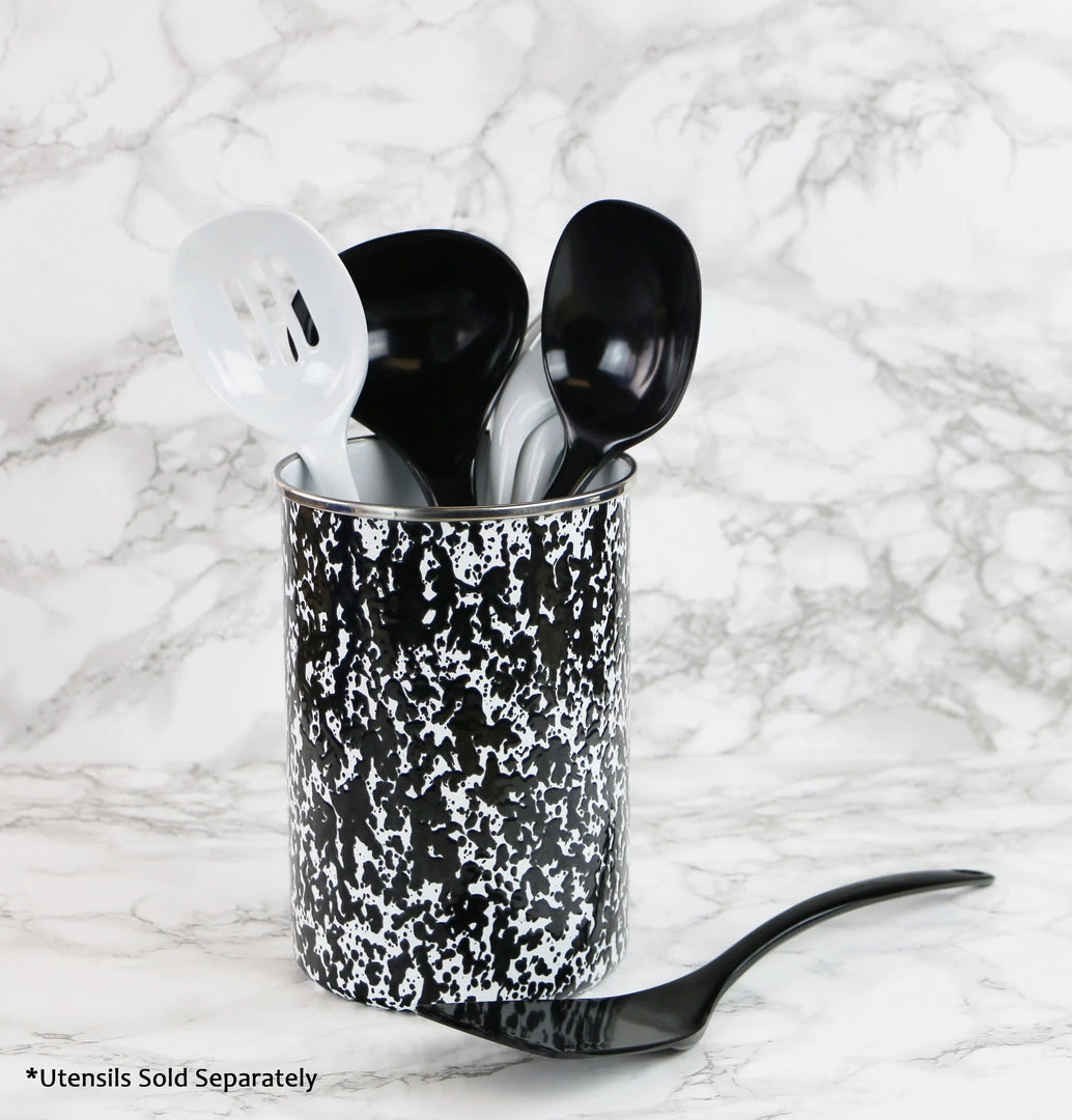 This enamel on steel utensil holder will hold a variety of utensil while adding convenience and color to your counter tops. This heavy gauge holder will be a great addition to your kitchen and has a colorful exterior with a white interior.