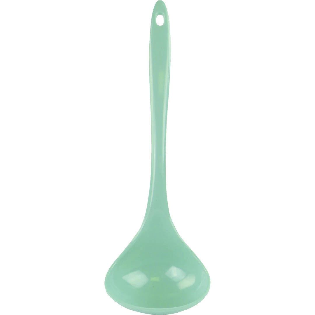 This colorful ladle is made of melamine (plastic) and can be used in any type of cookware since it will not scratch or damage pots or pans.