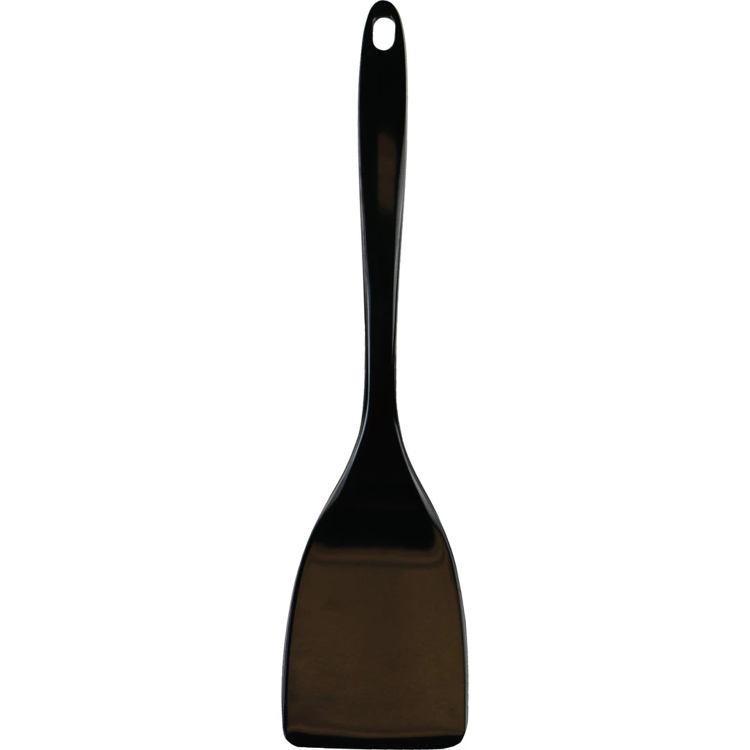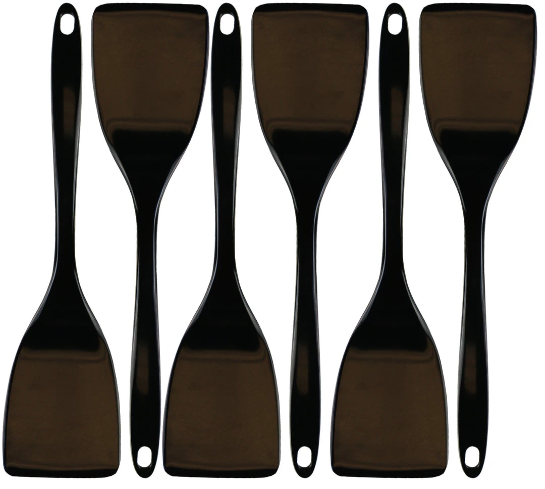 This colorful spatula is made of melamine (plastic) and can be used in any type of cookware since it will not scratch or damage pots or pans.