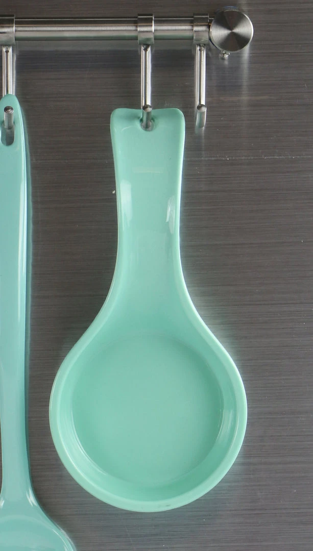 This colorful spoon rest is made of plastic and is lightweight. This spoon rest keeps sloppy utensils from messing up counters or leaving stains. You can either display it on the counter or hang it up. Food Safe/BPA Free