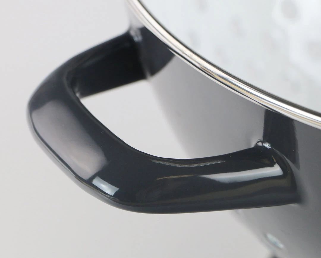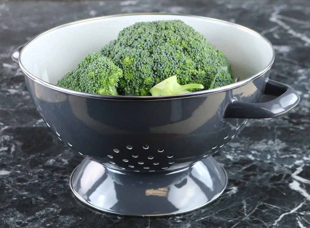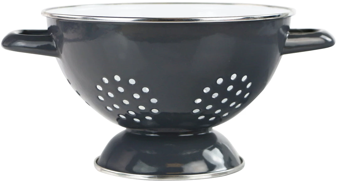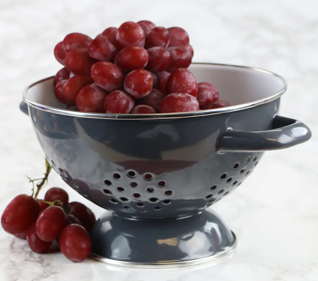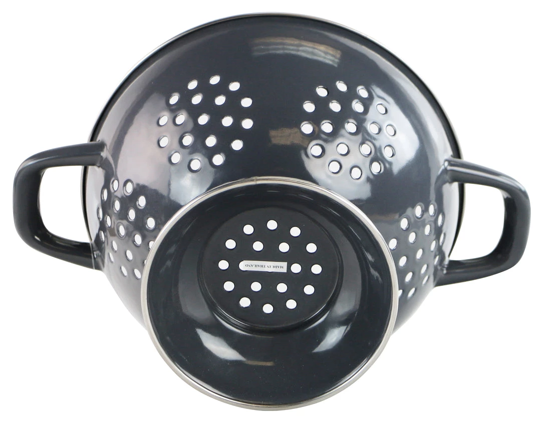 Enjoy these delightful colanders with their colorful enamel. Use for both hot and cold kitchen prep. They also work great as fruit bowls because of their great air circulation, due to the holes on the bottom of the bowl.