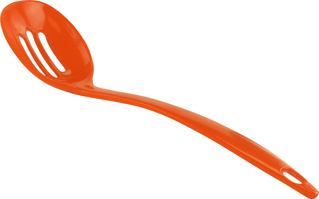This colorful slotted spoon is made of melamine(plastic)and can be used in any type of cookware since it will not scratch or damage pots or pans.