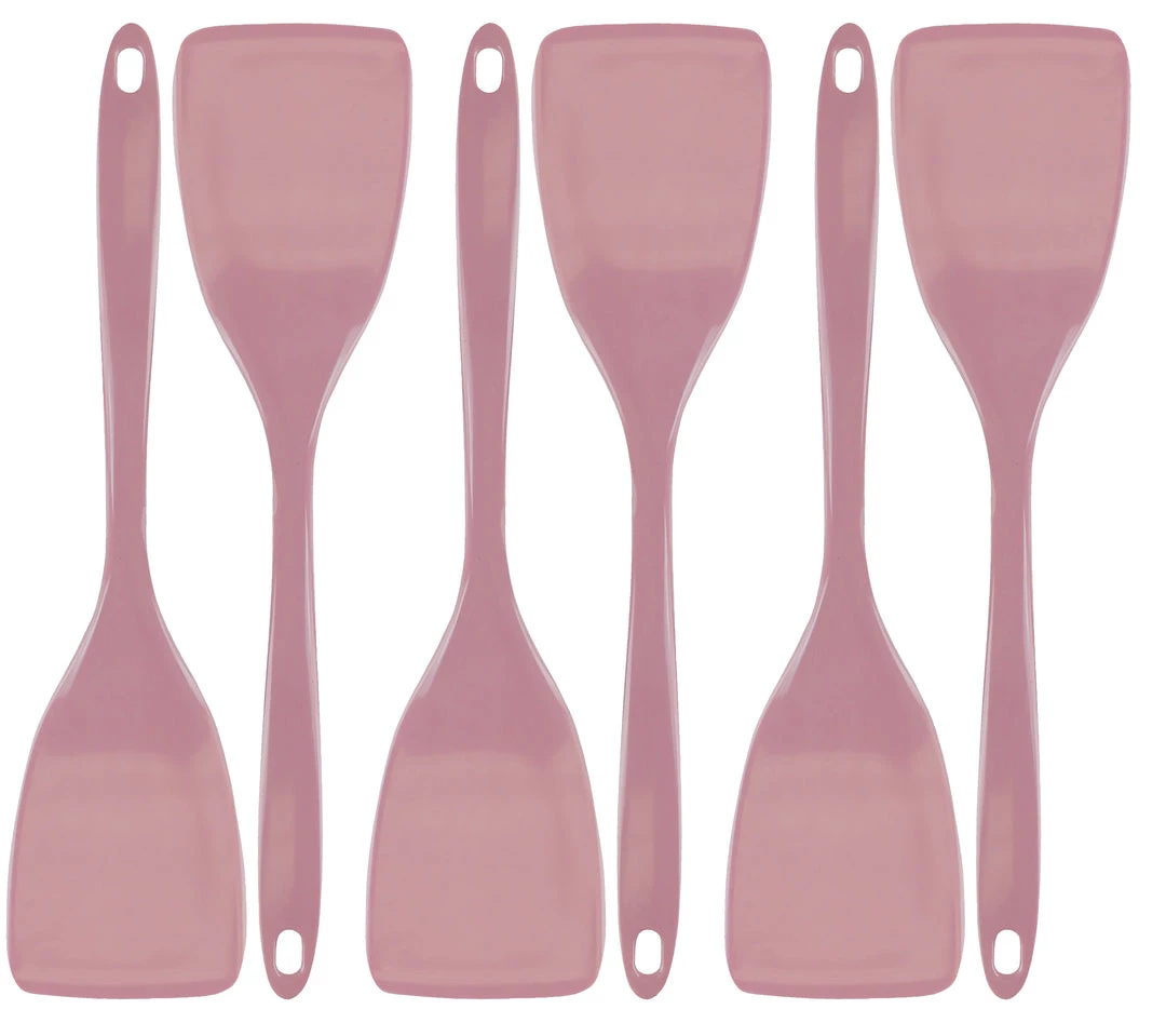 This colorful spatula is made of melamine (plastic) and can be used in any type of cookware since it will not scratch or damage pots or pans.