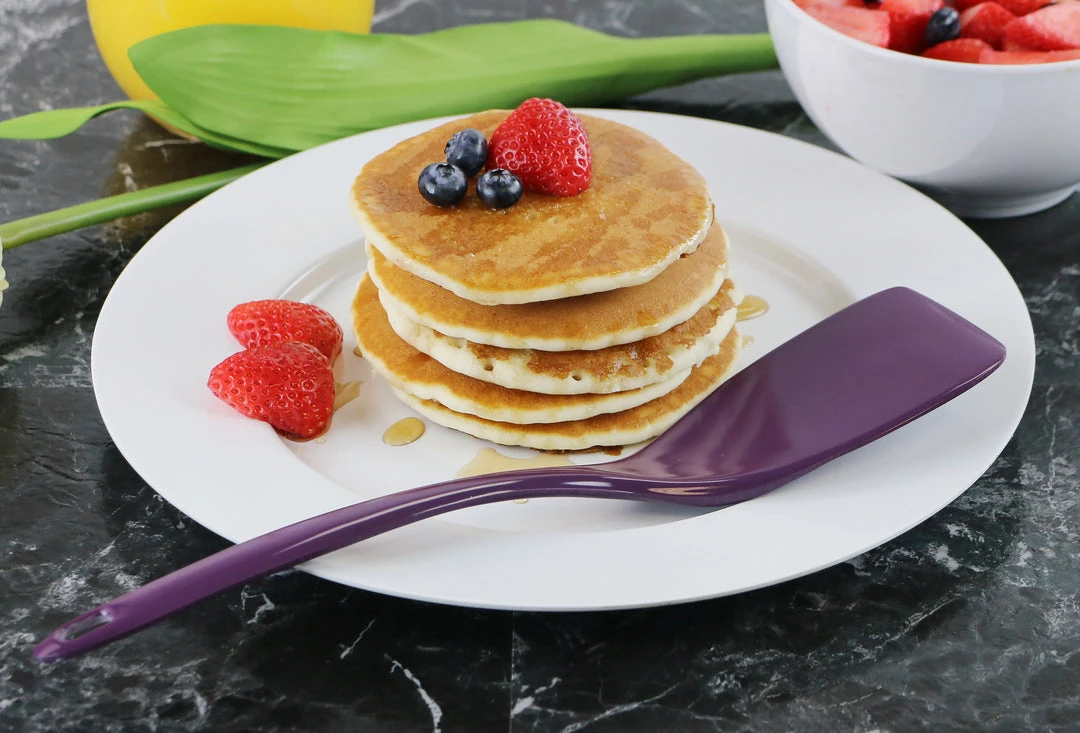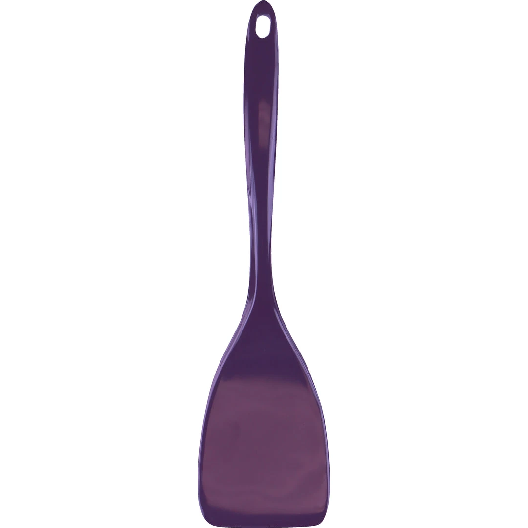 This colorful spatula is made of melamine (plastic) and can be used in any type of cookware since it will not scratch or damage pots or pans.