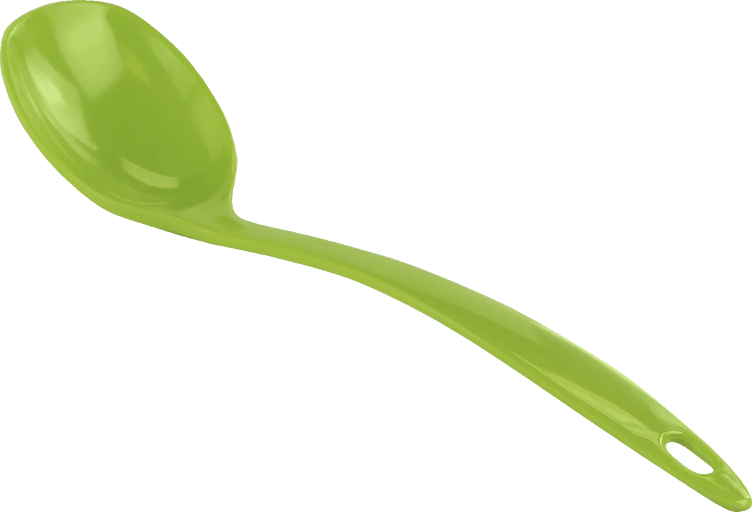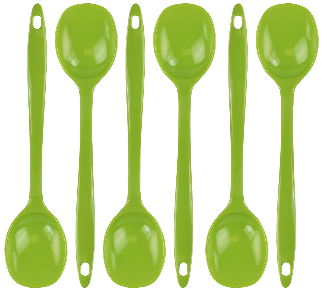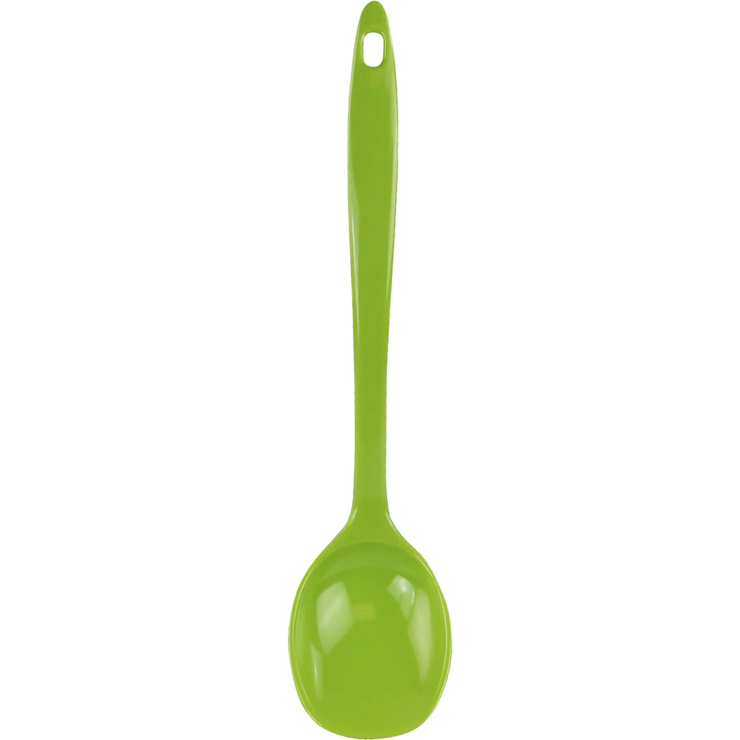 This colorful spoon is made of melamine (plastic) and can be used in any type of cookware since it will not scratch or damage pots or pans.
