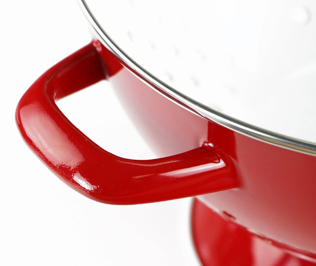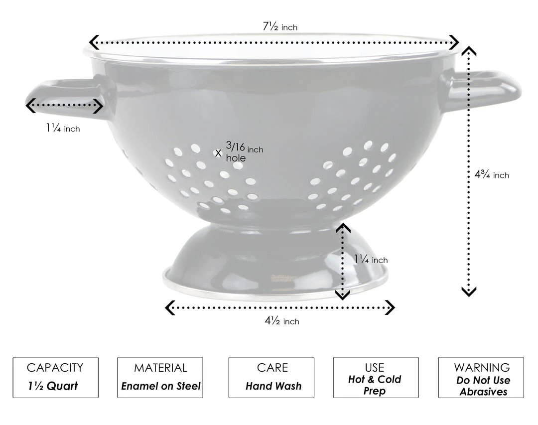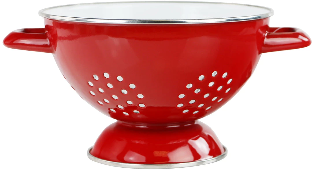 Enjoy these delightful colanders with their colorful enamel. Use for both hot and cold kitchen prep. They also work great as fruit bowls because of their great air circulation, due to the holes on the bottom of the bowl.