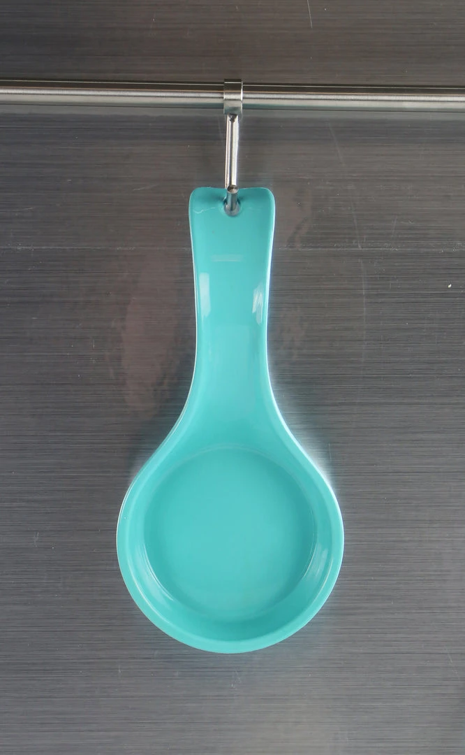This colorful spoon rest is made of plastic and is lightweight. This spoon rest keeps sloppy utensils from messing up counters or leaving stains. You can either display it on the counter or hang it up. Food Safe/BPA Free