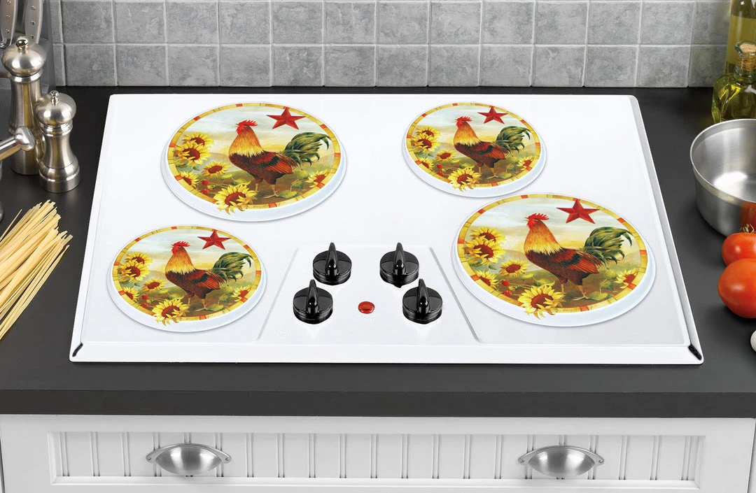 Reston Lloyd burner covers are made of tin and allow you to make your kitchen look clean and organized. This set was designed to go on electric stovetops.