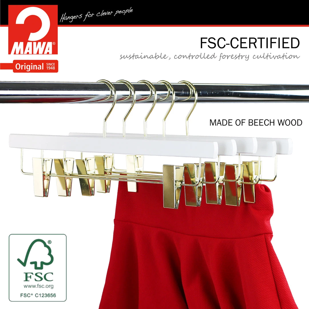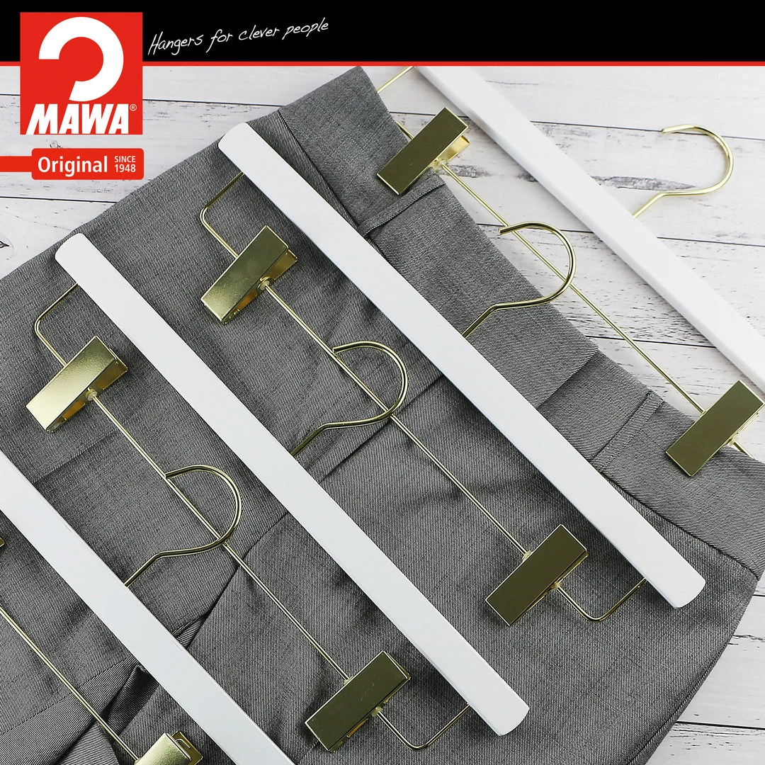Reston Lloyd Metropolis Series, Pant & Skirt Hanger With Adjustable Clips, Trend 40D, White, Gold Hook Best In Wood