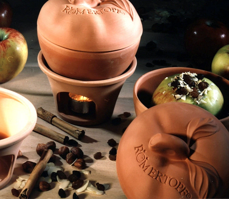 Slowly roast your apples or pears in elegant fun. This terra cotta stand made by Romertopf will hold your Apple Baker while you cook it over the flame. Enjoy this fun dessert alternative for yourself or your guests.