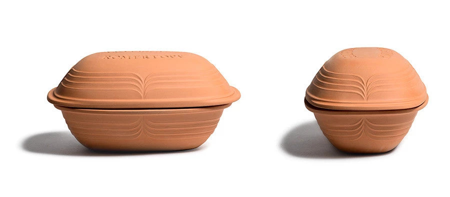 The new “Modern” series, was created with simplicity in mind. Crafting the traditional quality clay roaster while decorated with a fresh wave of stylized lines. The Römertopf revives old cooking traditions while at the same time possessing a number of thoroughly modern advantages. This ideal roaster is unlike most cookware because of its natural high-quality clay from Germany, which will help retain vitamins and minerals in your dishes. Cooking in Römertopf® not only save nutrients but save time as well, as the baker will not need your attention while it cooks your meal to perfection. This German-made Römertopf® comes with an all-natural glass frit glazed bottom (not a non-stick coating) which will allow for easy and quick clean up. The unglazed top has very fine pores to absorb water and when put in the oven will create a gentle layer of steam to develop inside the Römertopf® for succulent and juicy results.